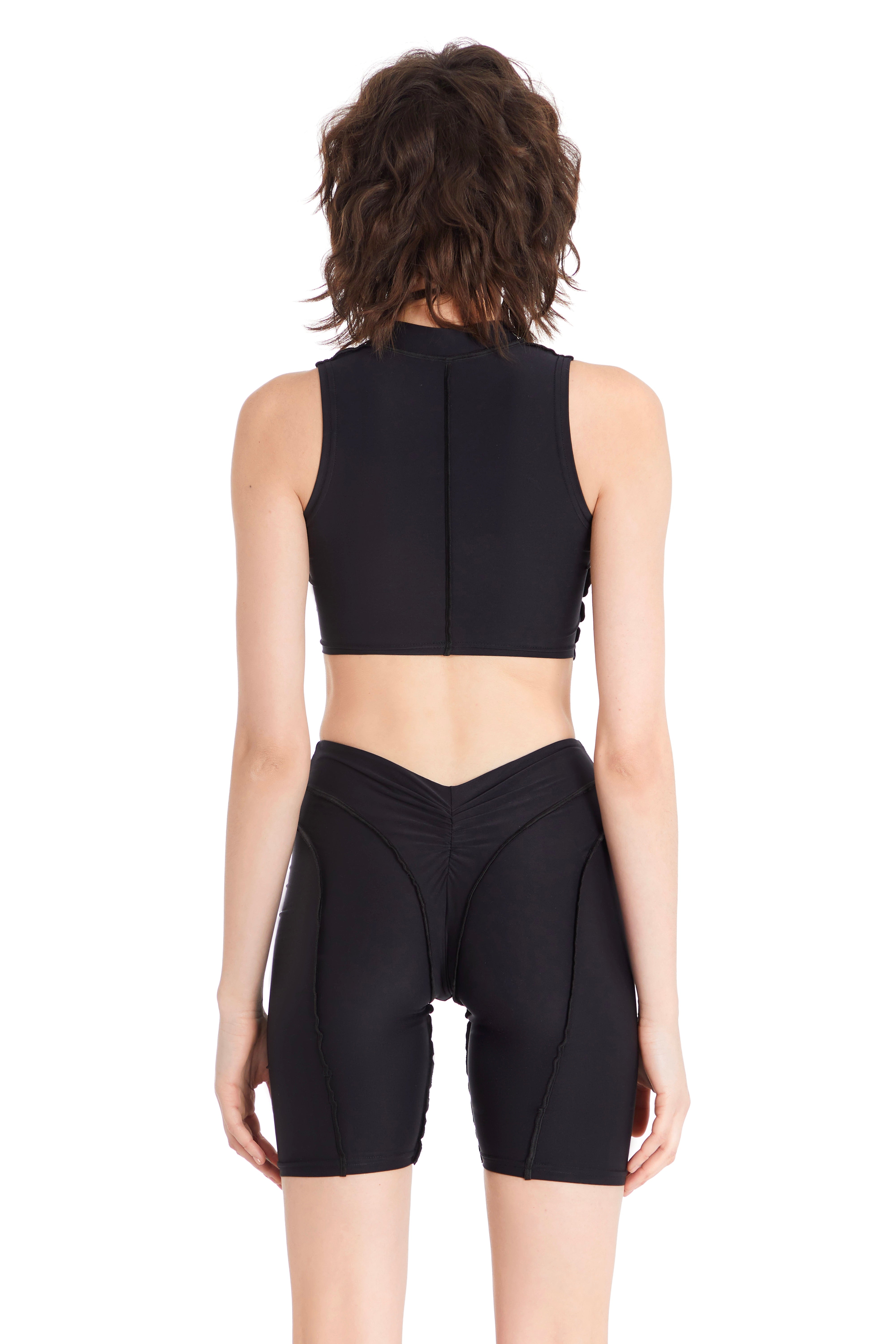 Komplet składający się z topu w kształcie litery V zapinanego na suwak z przodu oraz spodenek ze średnim stanem i... Przeczytaj więcej