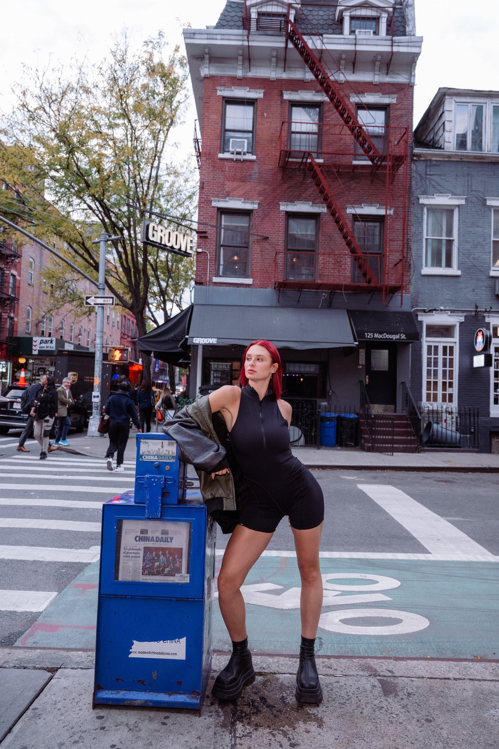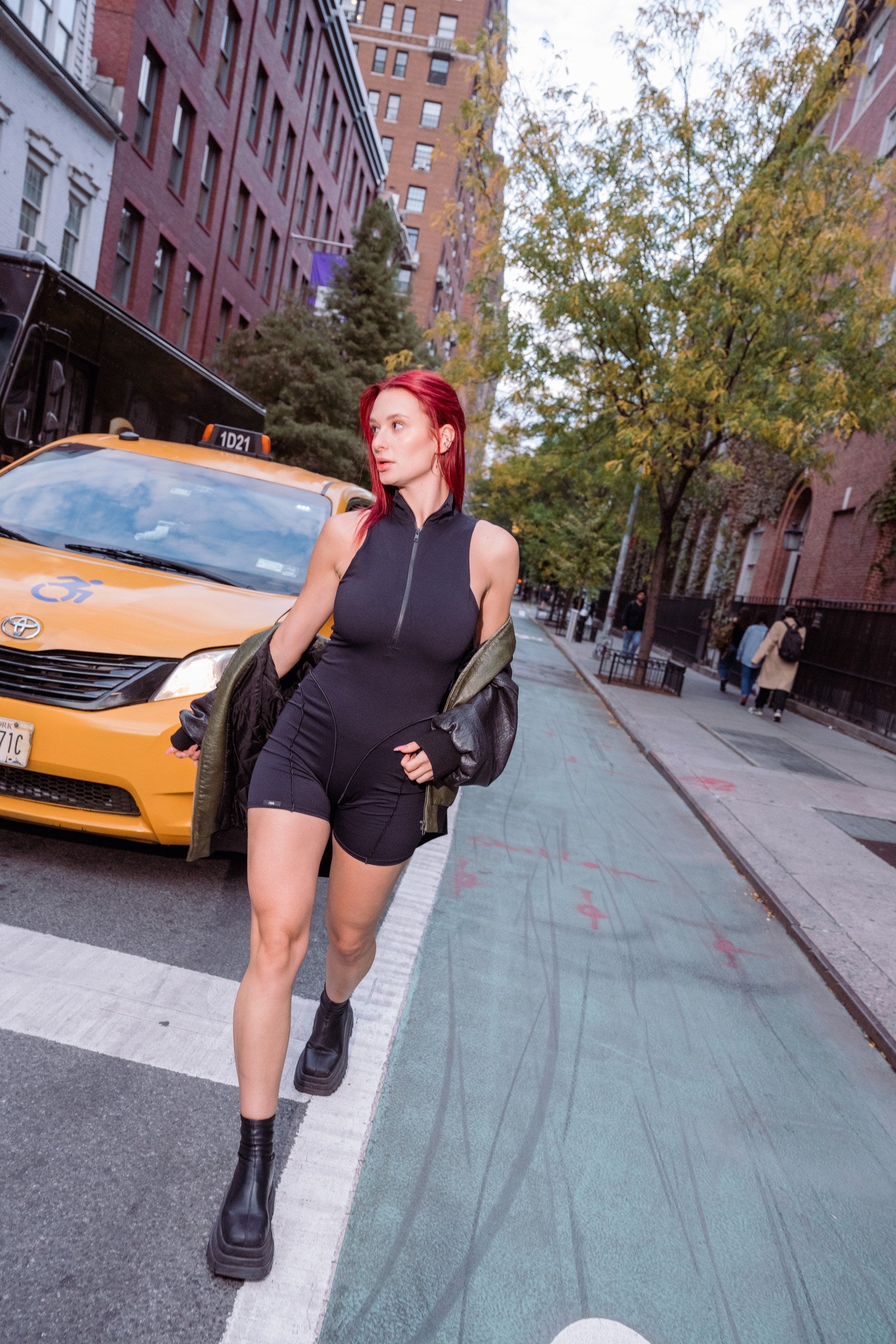 Kombinezon bez rękawów z przedłużonym zamkiem błyskawicznym z przodu, który umożliwia regulację głębokości dekoltu. Dopasowany krój szortów typu biker podkreśla... Przeczytaj więcej